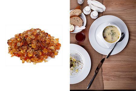El primer ejemplo más significativo es en la elaboración de las gominolas, chicles o caramelos. En el mundo de la repostería es muy utilizado, ya que la goma arábiga preserva el sabor original de los ingredientes,” encapsulando” los aromas. Además evita la cristalización del azúcar manteniendo así la homogeneidad de la mezcla.