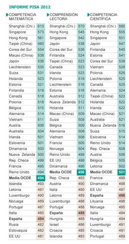 El Informe PISA se trata del análisis de los resultados de los exámenes internacionales organizados por la Organización para la Cooperación y el Desarrollo Económicos, conocida más comúnmente como OCDE, con el fin de realizar una evaluación del rendimiento de los alumnos y, por consiguiente, del sistema educativo de cada uno de los países que participan en esta prueba. Los exámenes se realizan cada tres años y en él se evalúan las competencias de alumnos de 15 años en materias como: matemáticas, comprensión lectora y ciencias. Esta semana ha habido presentación del Informe PISA 2012 y los resultados para España siguen sin ser nada favorables. La nota media: Suspenso.