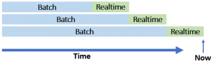 El resultado de esta consulta es la combinación de los datos procesados por los paradigmas streaming y batch. Aunque existen sistemas para realizar este tipo de consultas contra PetaBytes de datos, son excesivamente costosos en recursos y no son el enfoque más eficaz. Para resolverlas de una forma más eficiente introduce la idea de calcular previamente los resultados con un conjunto de vistas y consultar estas vistas. La arquitectura está dividida en tres partes: batch layer (capa de batch processing), serving layer (capa de consulta) y speed layer (capa de stream processing). El funcionamiento es el siguiente: