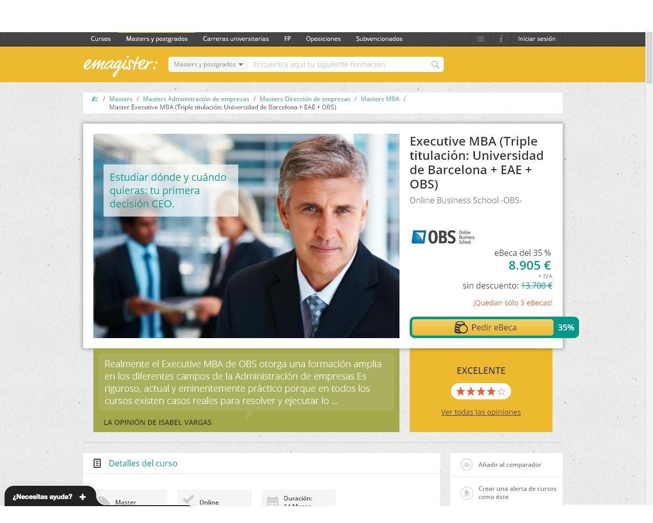 Emagister te quiere ayudar. Ahora tienes la oportunidad que buscabas para estudiar tu Máster en los centros más prestigiosos.