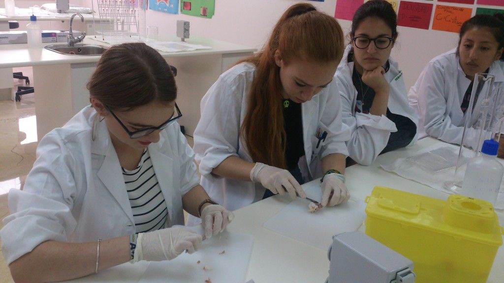 Los alumnos de primer curso de anatomía Patológica y Citodiagnóstico han realizado un experimento para comprobar las propiedades físicas del tejido óseo. En concreto, ver qué sucede cuando al hueso se le elimina el fosfato cálcico que le confiere su dureza.