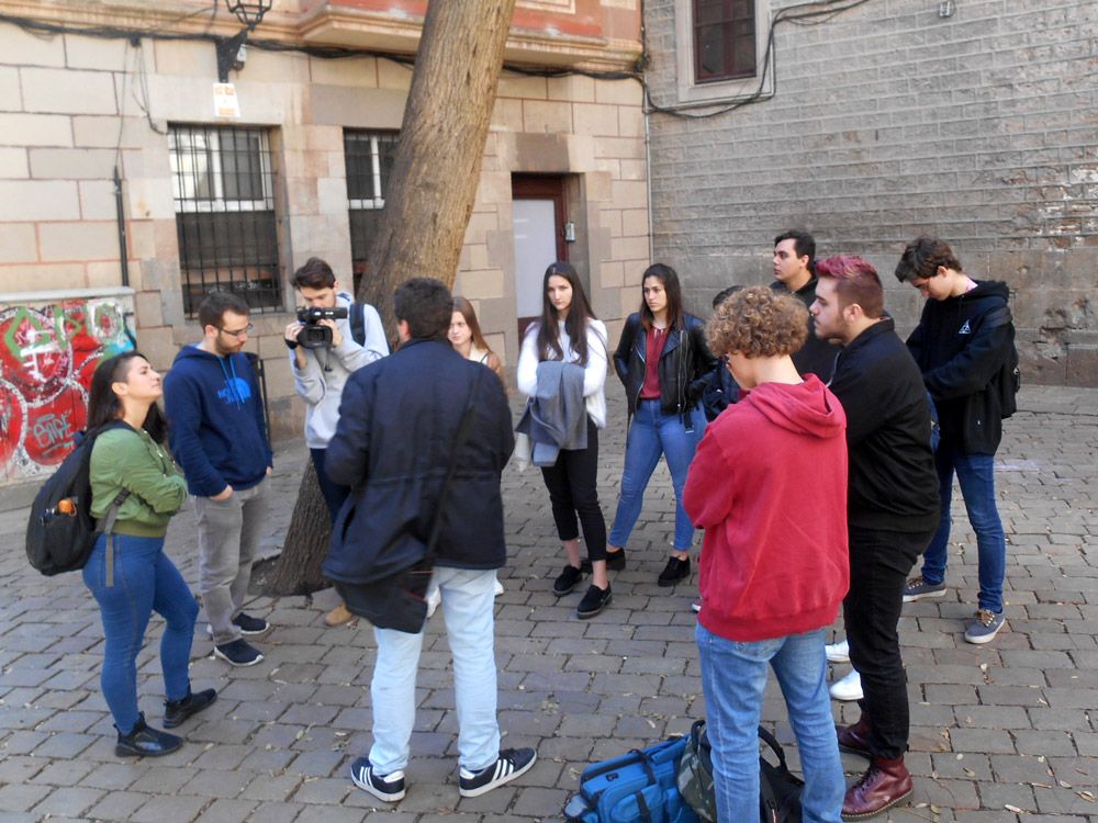 Los futuros cineastas han recorrido el centro de Barcelona conociendo cada uno de los escenarios que se utilizaron para el rodaje, acompañados de la explicación de Miguel que participó en la organización y producción del largometraje.