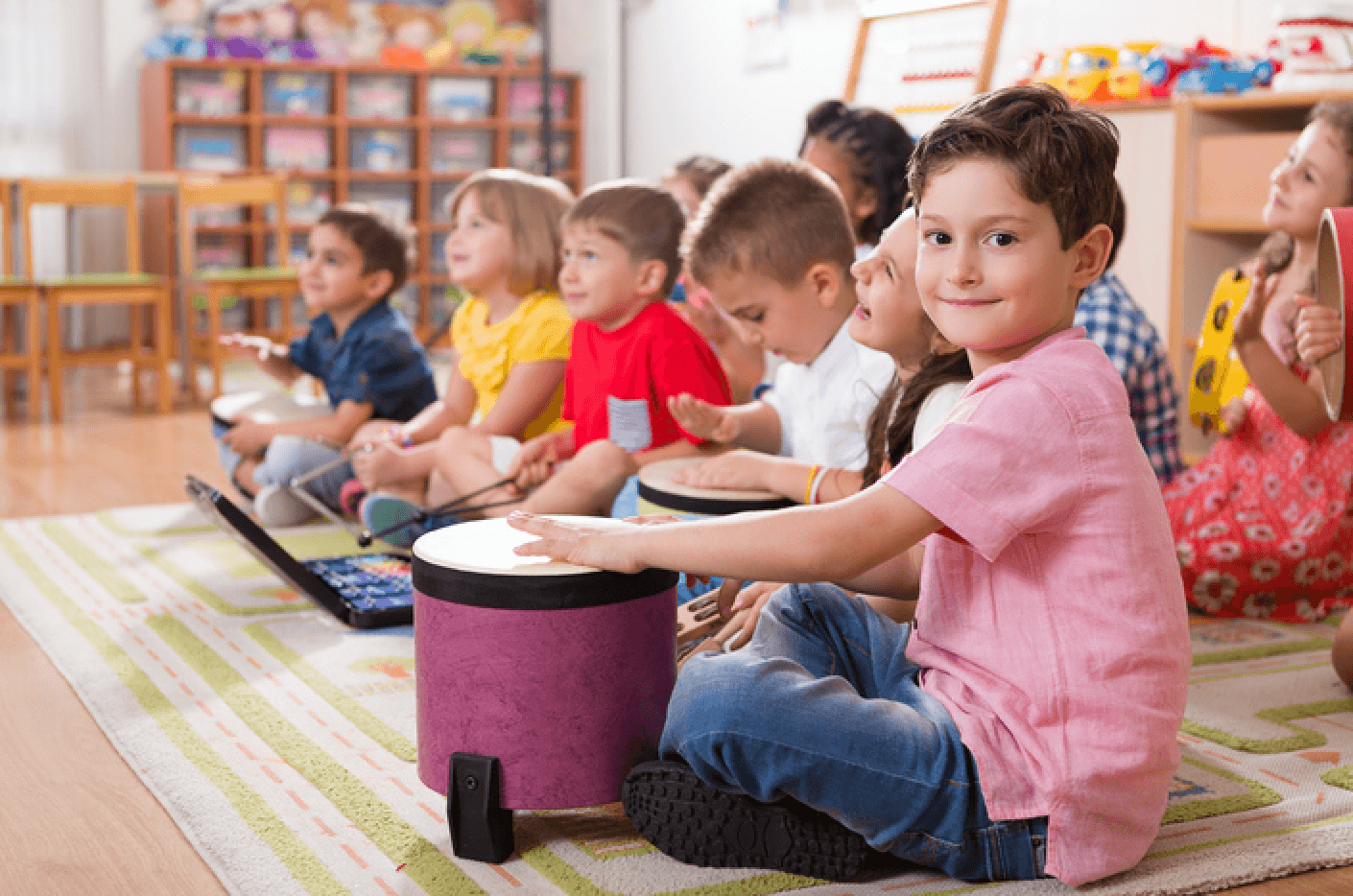 - Talleres de música que sirven a los pequeños para divertirse y ampliar sus bagajes musicales. Así. se empiezan a familiarizar con los distintos tipos de instrumentos. En este sentido, se fomenta el desarrollo de la psicomotricidad gruesa y el sentido de la audición.