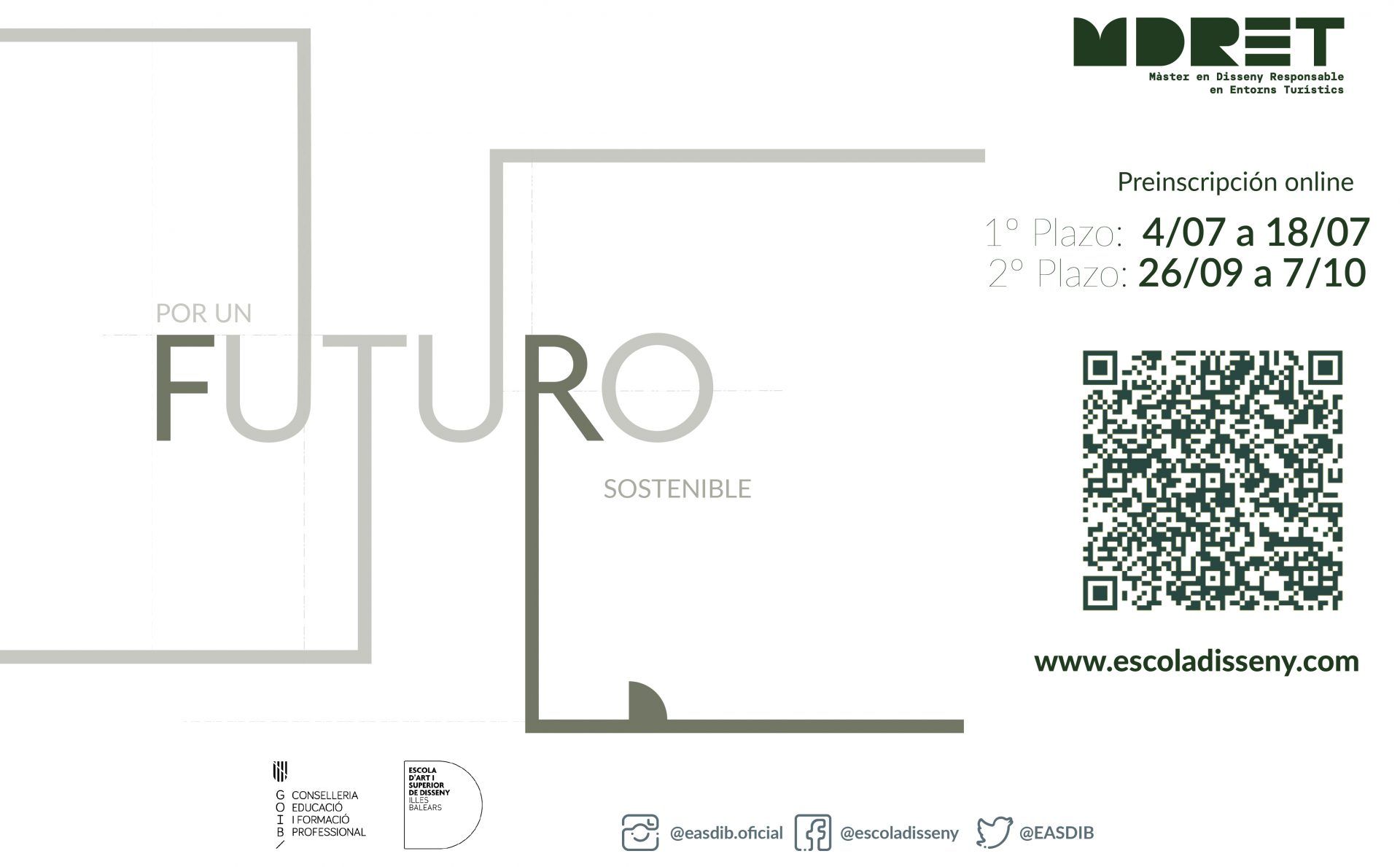 El consejero de Educación y Formación Profesional de las Islas Baleares, Martí March, acompañado del director general de Formación Profesional y Enseñanzas Artísticas Superiores, Antoni Baos, y conjuntamente con la Escola d’Art i Superior de disseny (EASDIB), con la presencia del director Miquel Oliver y la jefa de estudios adjunta Dulce Reynés, realizaron el jueves 16 de junio de 2022 la presentación pública del máster oficial en Diseño Responsable en Entornos Turísticos (MDRET) que se realizará en la EASDIB el próximo curso 2022-23.
