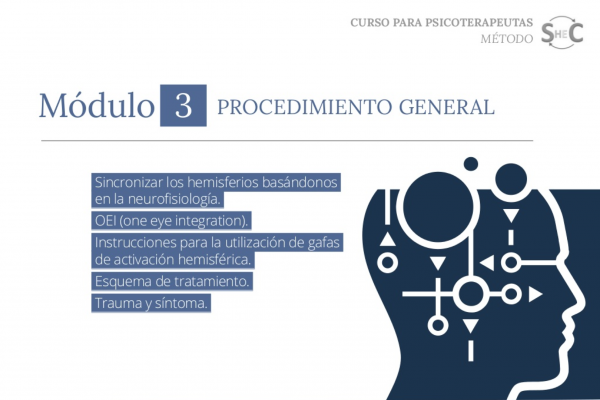 PROCESO CON MÉTODO SHEC. El terapeuta elabora una historia clínica junto con el paciente para identificar los hechos y el origen del problema. Ver como afectan hechos del pasado para poderlos elaborar y eliminar toda sintomatología. El terapeuta verá cual es la manera más adecuada y rápida de abordarlos. Se elabora un plan de tratamiento que puede ir de una o pocas sesiones para una situación concreta ( duelo, accidentes, fobias etc.) o más tiempo, algunas veces más de un año para situaciones más complejas o para situaciones que necesitan un trabajo más profundo y completo ( depresiones, autoestima, seguridad, adicciones etc) El terapeuta trabaja para ayudar al paciente a tener control emocional, poder encontrar el equilibrio, confianza y seguridad en su vida. Estas sesiones trabaja ayudado de unas gafas hemisféricas, estas van realizando una activación cerebral para elaborar esas situaciones con rapidez y utilizarán herramientas muy avaEzadas , que eliminarán la sintomatología que producen estas situaciones ( dolor físico y emocional así como cambios de creencias) con rapidez en cada sesión. ABORDAJE CON MÉTODO SHEC se centra en tres puntos: 1) Experiencias y aprendizajes de vida temprana. 2) Experiencias estresantes del presente 3) Pensamientos y comportamientos deseados para el futuro. El terapeuta enseñará ejercicios y herramientas para que utilice cuando necesita. Le enseña a manejarse en la vida. A no depender de nadie. También recomendará alimentos adecuados para su cerebro y sistema nervioso. Eliminar alimentos que le alteran. Dará herramientas de control.¿Necesitas un coach de formación?