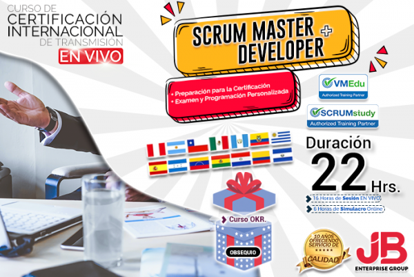 - 04 Certificado Internacionales (una vez aprobado) a nombre de Scrum Study.