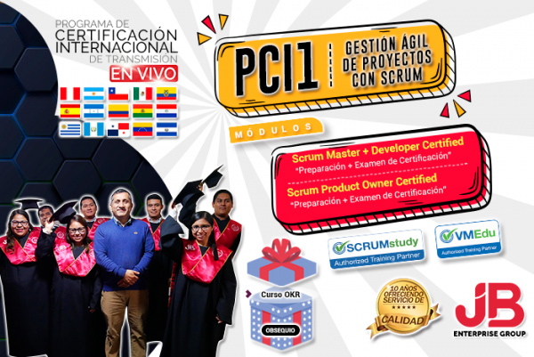 El Programa de Certificación Internacional en Gestión Ágile de Proyectos con SCRUM, el cual consiste en llevar 2 módulos (cursos) tales como: