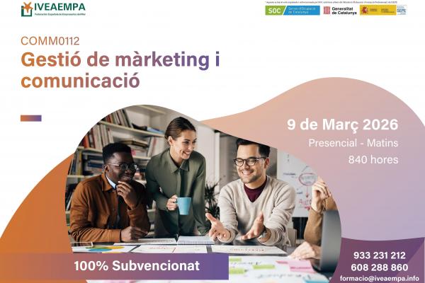 Explora nuevas facetas sobre la gestión del marketing y comunicación de una empresa con esta formación. Consigue tu plaza y aumenta tus conocimientos en el sector. Aprende a gestionar eventos de marketing, realizar un plan de medios, un plan de marketing… ¡y hasta a elaborar material publicitario! ¿Estás seguro/a de que te lo quieres perder? Apúntate, ¡no te arrepentirás!